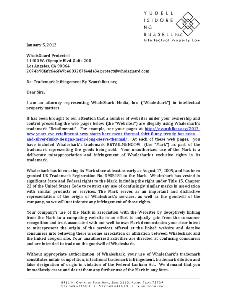 Cease And Desist Letter Trademark Infringement . In My Previous Article, 6 Ways To Recover A Domain Name From An Infringing Cybersquatter, I Provide Six Ways You Can Deal With Trademark Infringement.